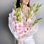 На фото букет из 9 розовых гладиолусов. В составе: гладиолус 9 шт, дизайнерская упаковка 1 шт, . Все цветы свежие и ароматные, букет красиво оформлен и отлично подходит для подарка. Доступна доставка цветов или самовывоз.