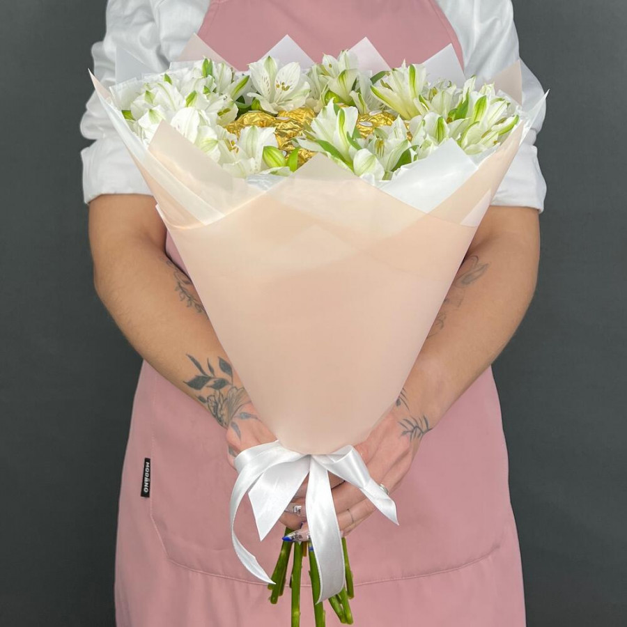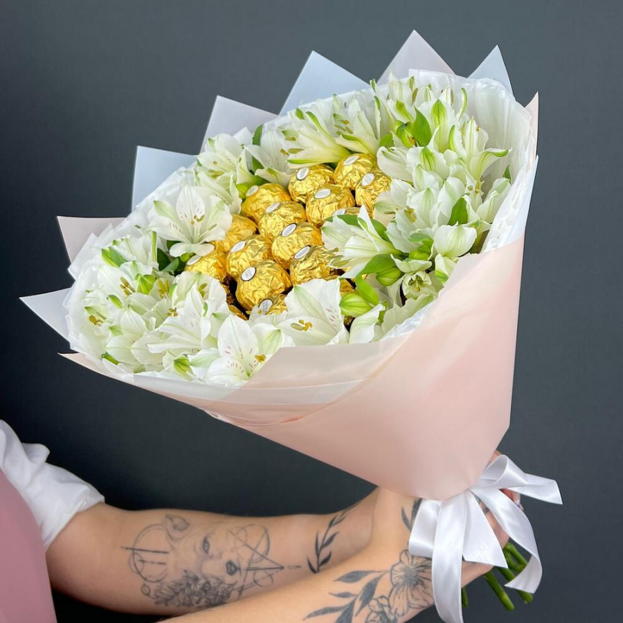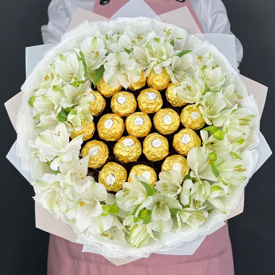 Букет из конфет Ferrero Rocher и и альстромерии в Балаково