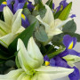 Букет из белых лилий с синими ирисами в Балаково