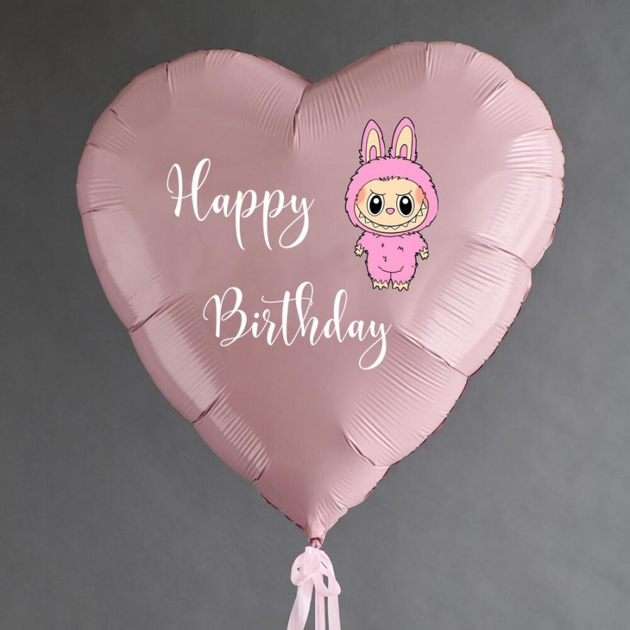 Шар сердце Лабубу розовый